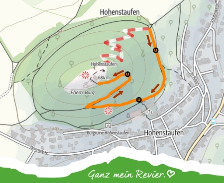 Von dort geht es über den Löwenpfad Staufer-Runde, den Altenberg und über den Sonderbachsee zurück zur Bürenhalle.