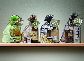 Unser Oster-Säckle bringt feine Leckereien aus der Region: cremiger Eierlikör aus Dürnau, knuspriges Bio-Granola aus Göppingen, Bosch-Wibele aus Uhingen und leckeren Honig aus Bad Überkingen.